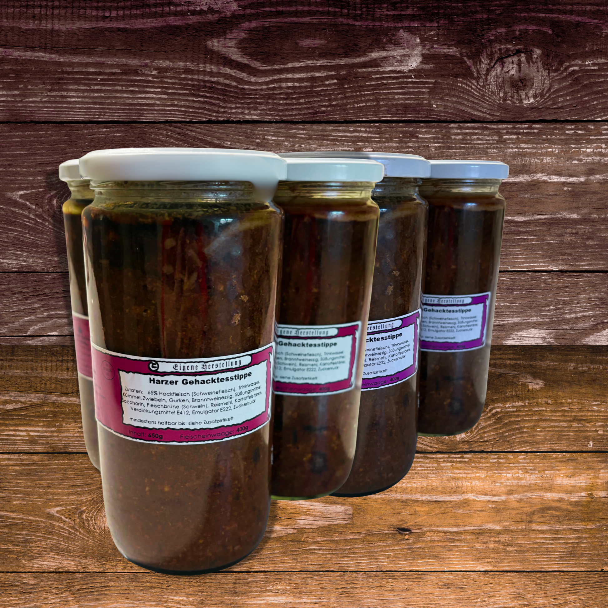 Deftig, herzhaft und saumäßig lecker – unsere Harzer gehacktes Stippe im Glas ist echte Harzer Hausmannskost 🏔️Fein angebratenes Schweinegehacktes, verfeinert mit fruchtigen Gürkchen und würzigen Zwiebeln, liebevoll abgeschmeckt und schonend ins Glas gefüllt. Genau so, wie man es im Harz seit Generationen kennt und schätzt: kräftig im Geschmack, ehrlich und sättigend.Ob klassisch zu cremigem Kartoffelbrei und Gemüse, zu Salzkartoffeln oder einfach pur – dieses Stippe ist ein echtes Wohlfühlgericht und bringt Heimatgefühl auf den Teller.